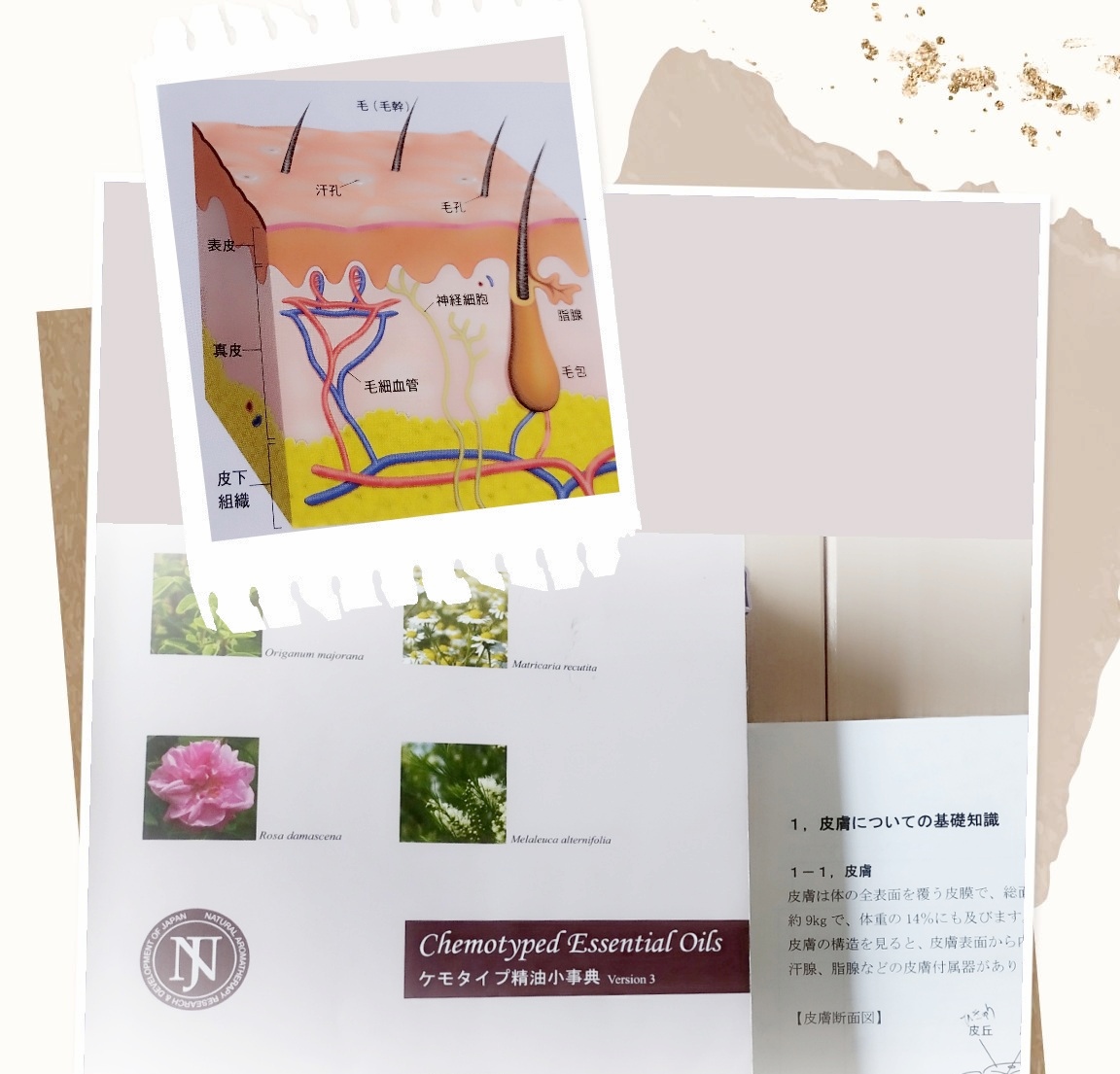 先日のドミニック・ボドゥー氏の講演でも、皮膚がいかに大切な器官であるかということを力説されていました。美容の面だけでなく健康に大きく関わる皮膚。精油の力をかりて健やかに保ちたいですね。