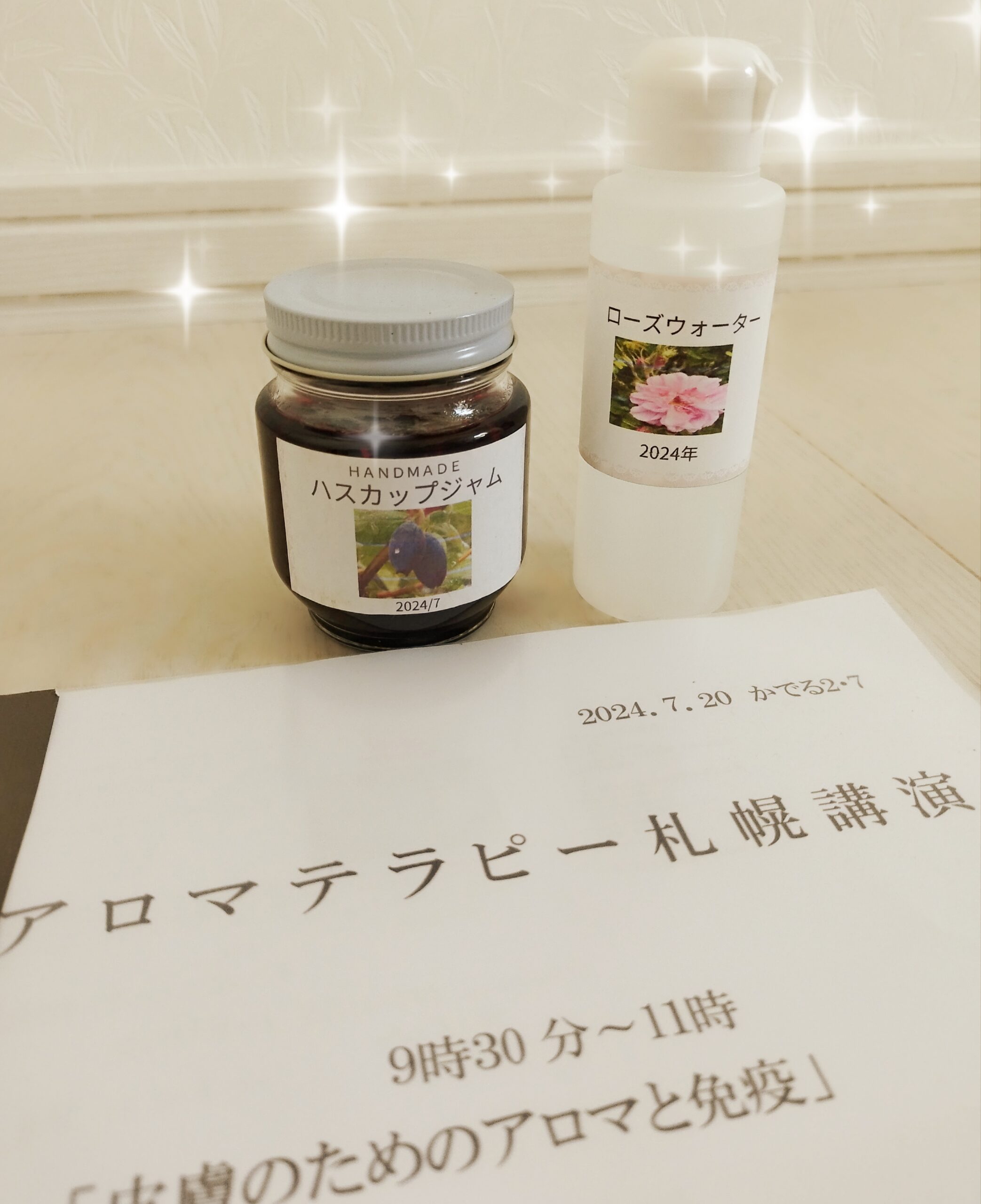 ナードアロマの大先輩が企画してくださっている講演会で、最後にローズウォーターとハスカップジャムの嬉しいお土産付き。