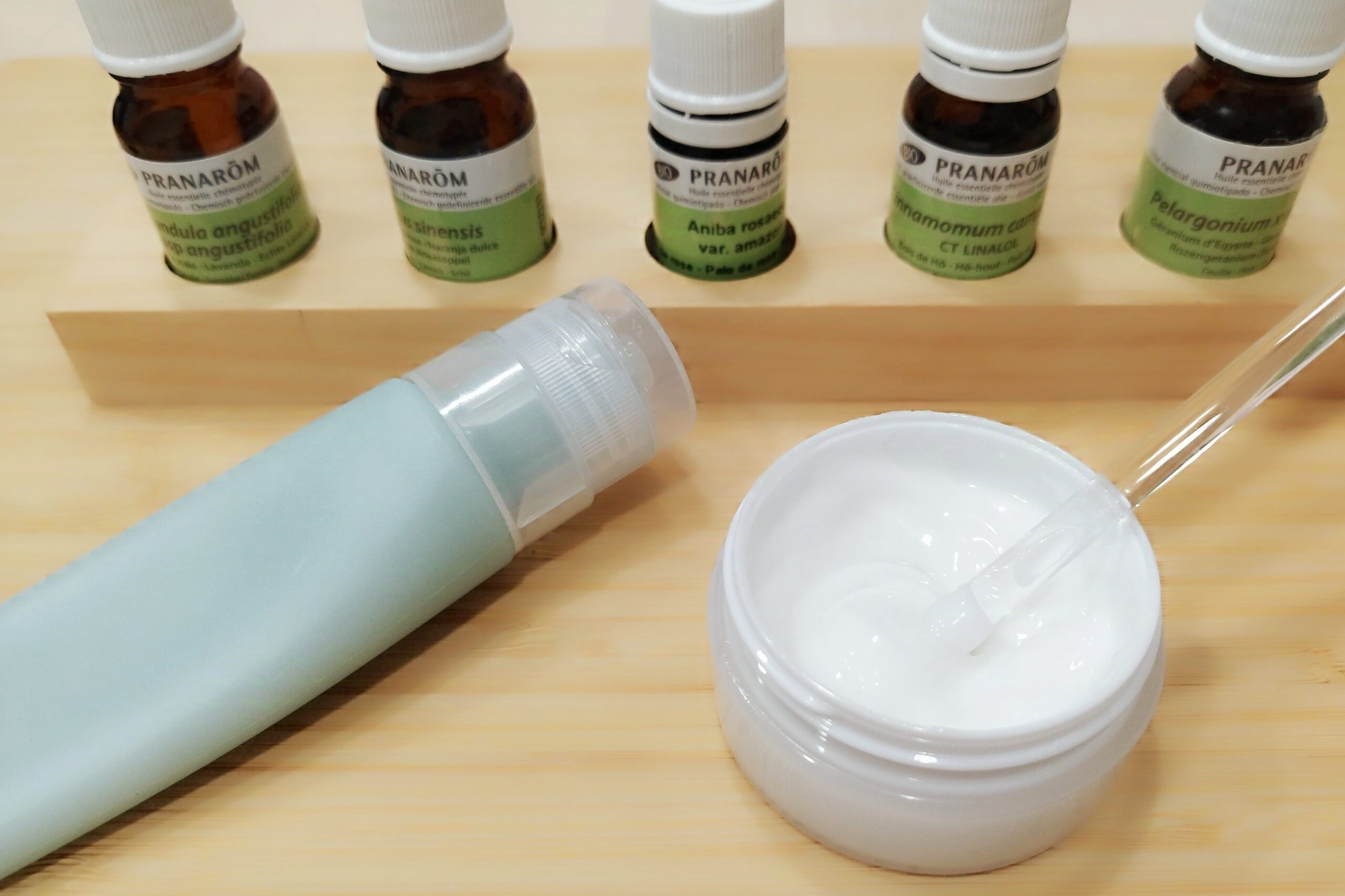 べたつきが気になる時は、植物油に植物性の乳化剤を使ってハーブウォーターを混ぜるとさらっとした使い心地になります。