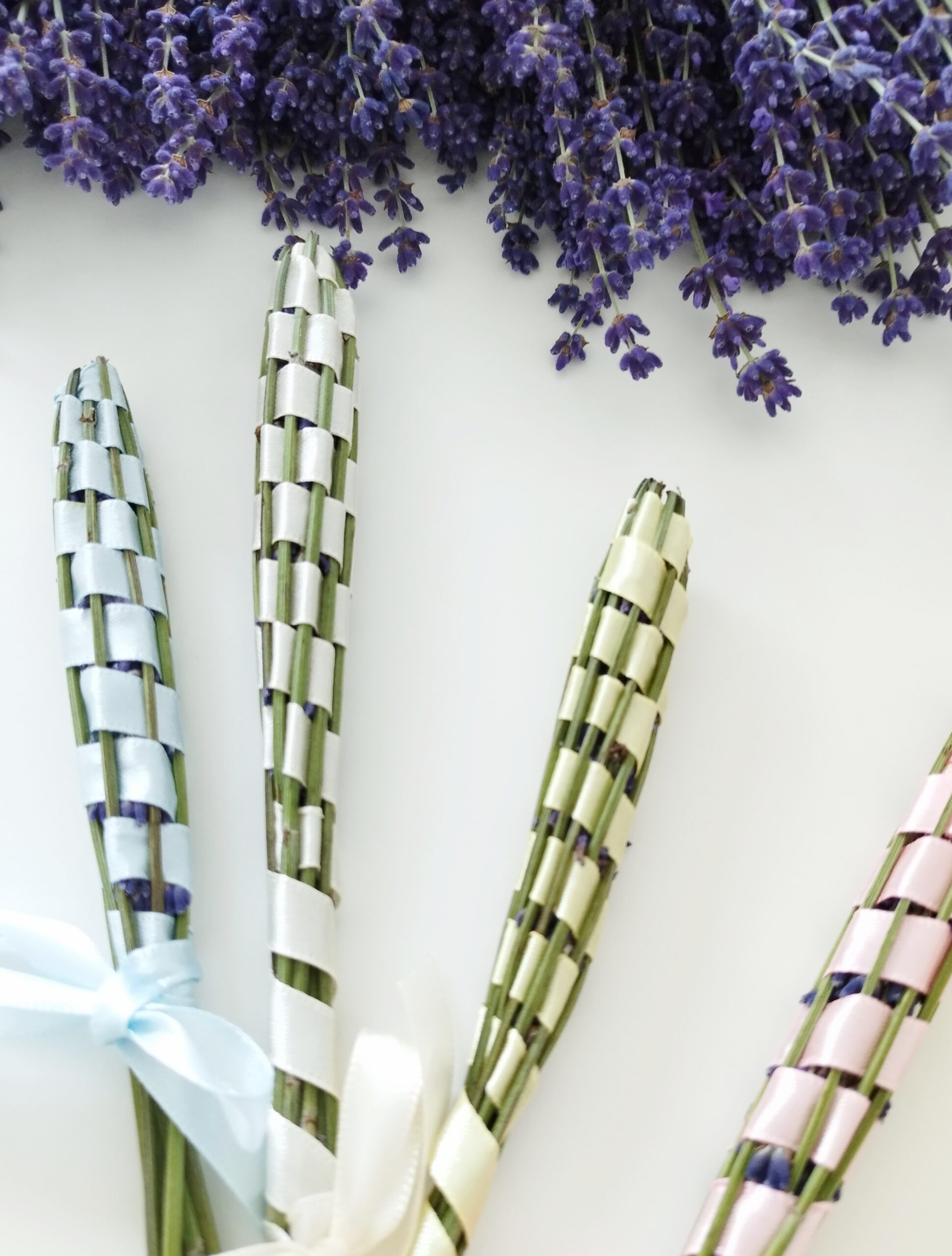 ラベンダーが乾燥してしまうと、作る時に茎がポキッと折れてしまうので、摘んできたら早めに作ります。