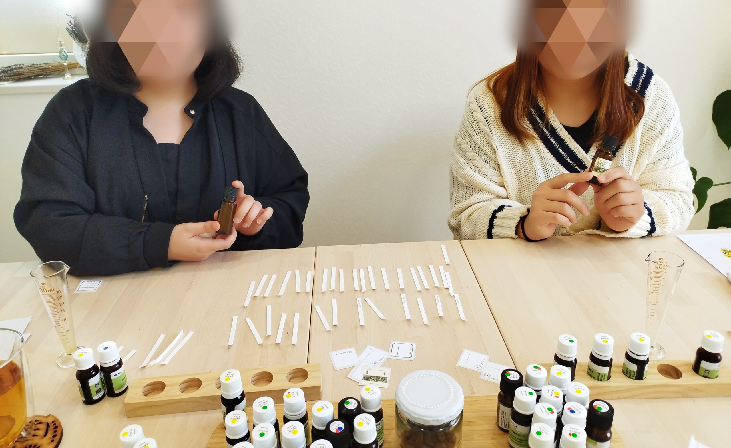 今回はお二人で【体質チェック付き アロマトリートメントオイル作り】にご参加くださいました✨