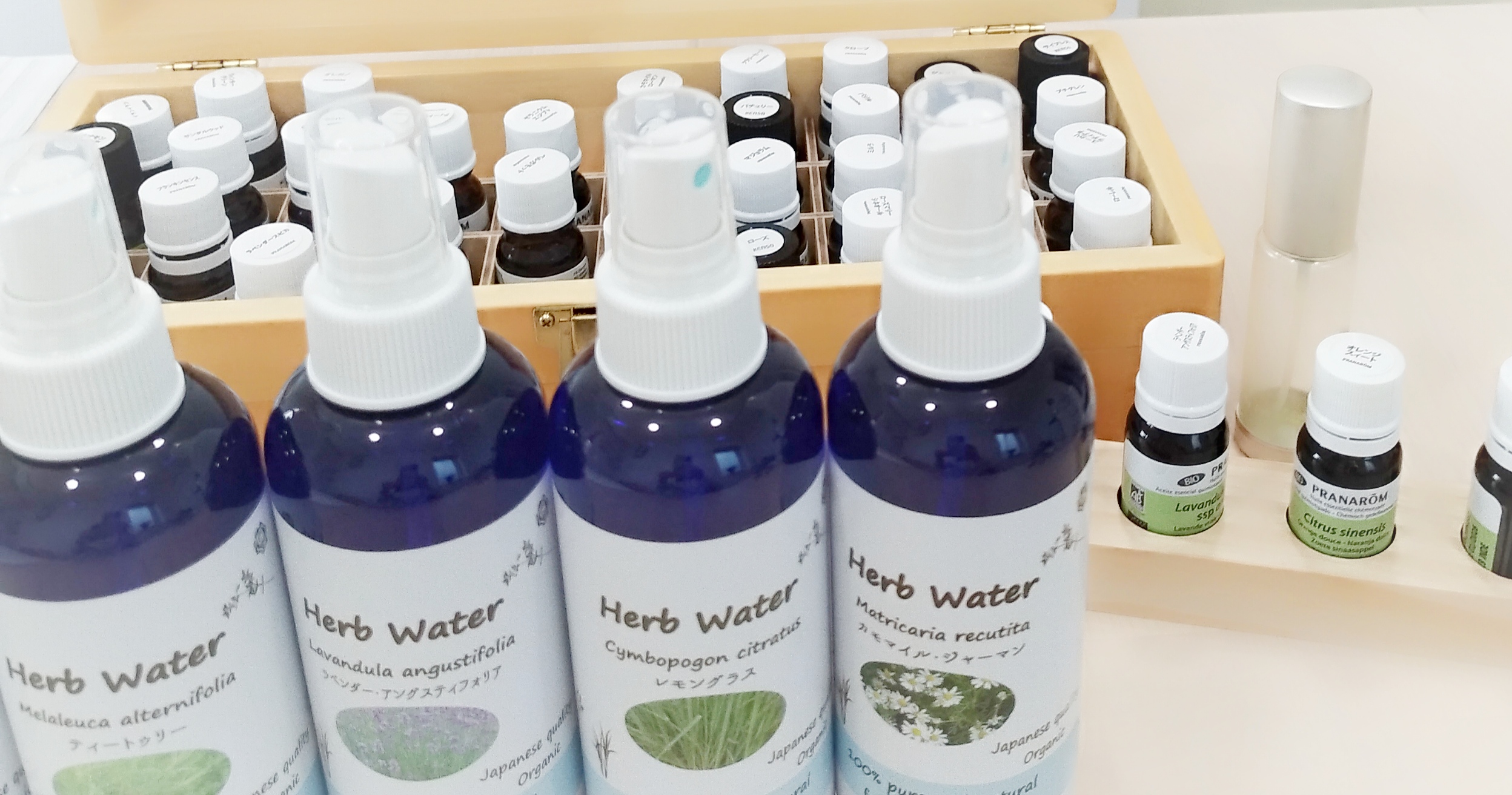 初めてのハーブウォーターに、「こんなに色々あるなんて!精油と違ってまた楽しい!」と感激されていました。