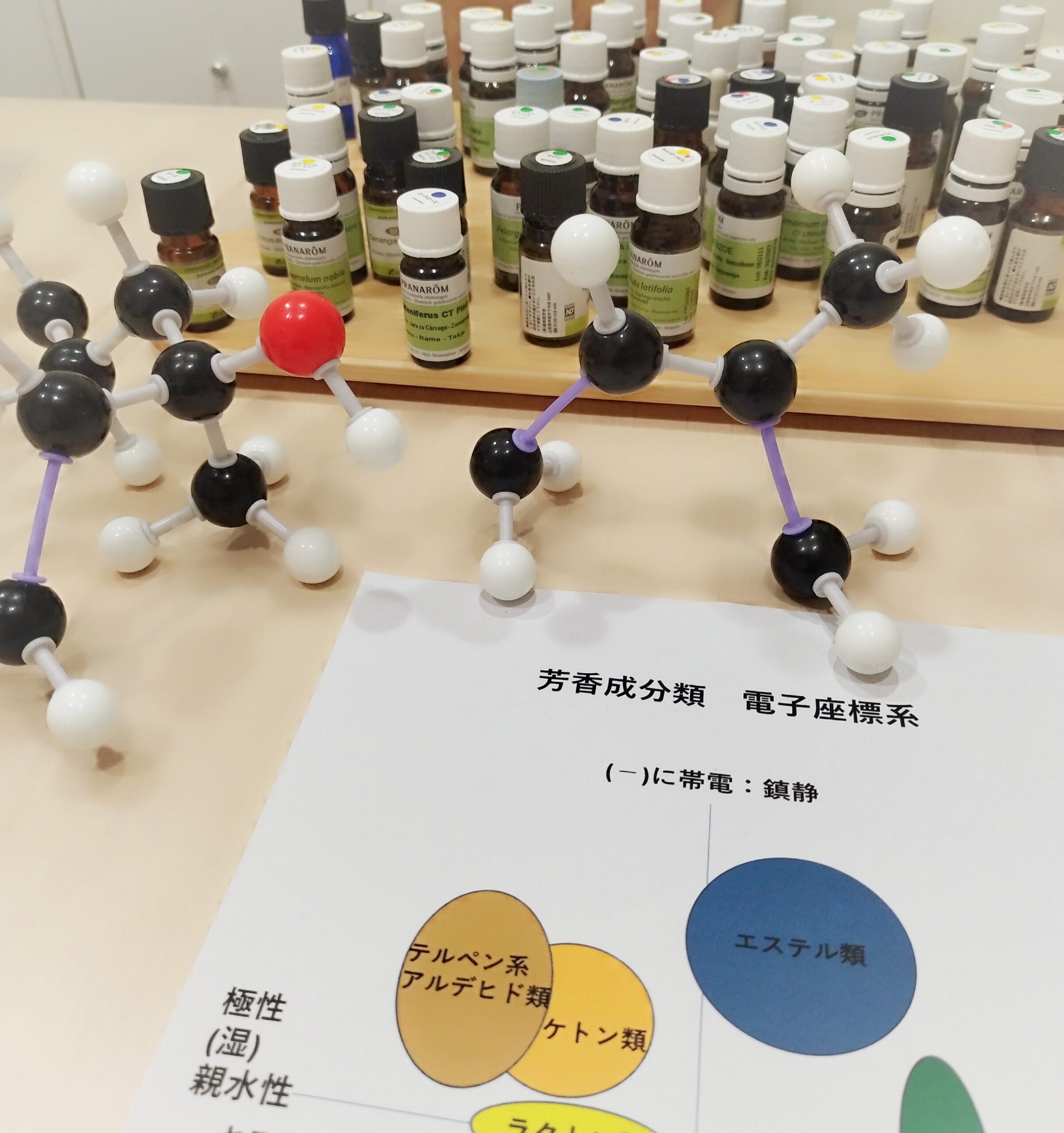 “精油を分子のレベルで見る”という化学的な部分を学んでいくのがアドバイザーコースのレッスン2です。