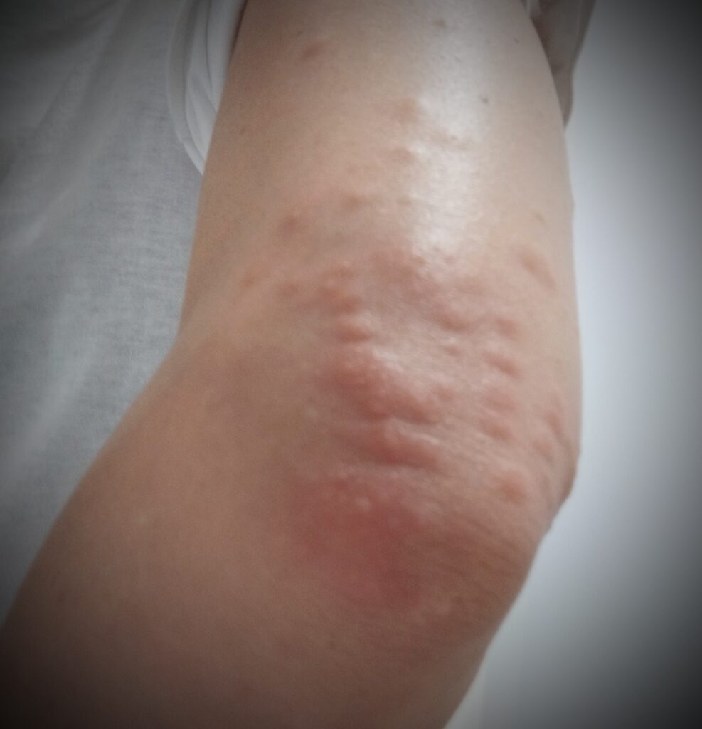 夕方、ハーブをちょこっと摘むつもりで、半袖でお庭へ。わさわさと茂っている所が気になって、ついつい長い時間庭いじり。綺麗になったことに満足して、すっきりした気持ちでおやすみなさい🌜🌜🌜が、 朝方、猛烈に右ひじあたりが痒くて目が覚め、見ると大...